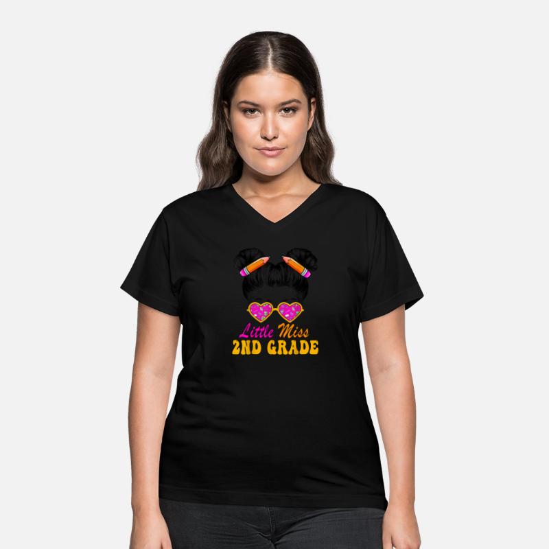Little Miss Second 2nd Grade Messy Bun Hair Back T