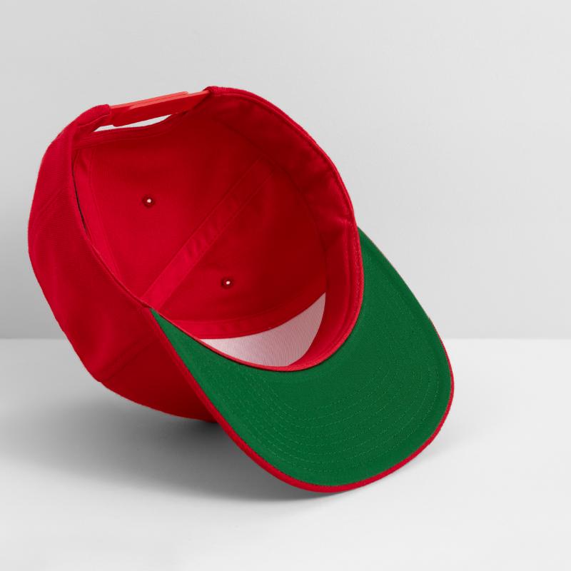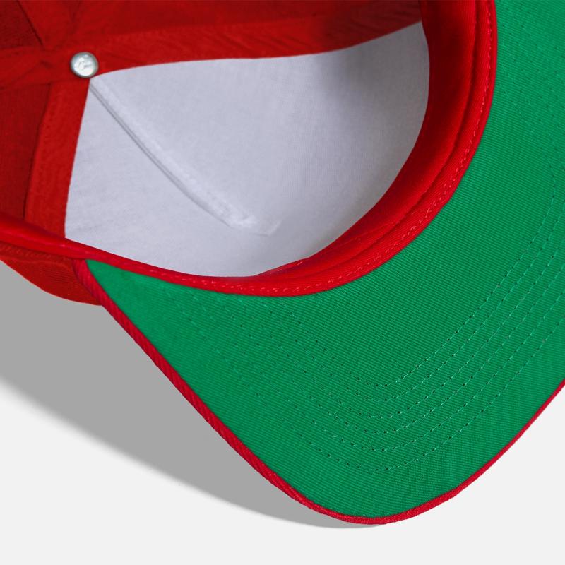- Flat but flexible brim. Underside is green.